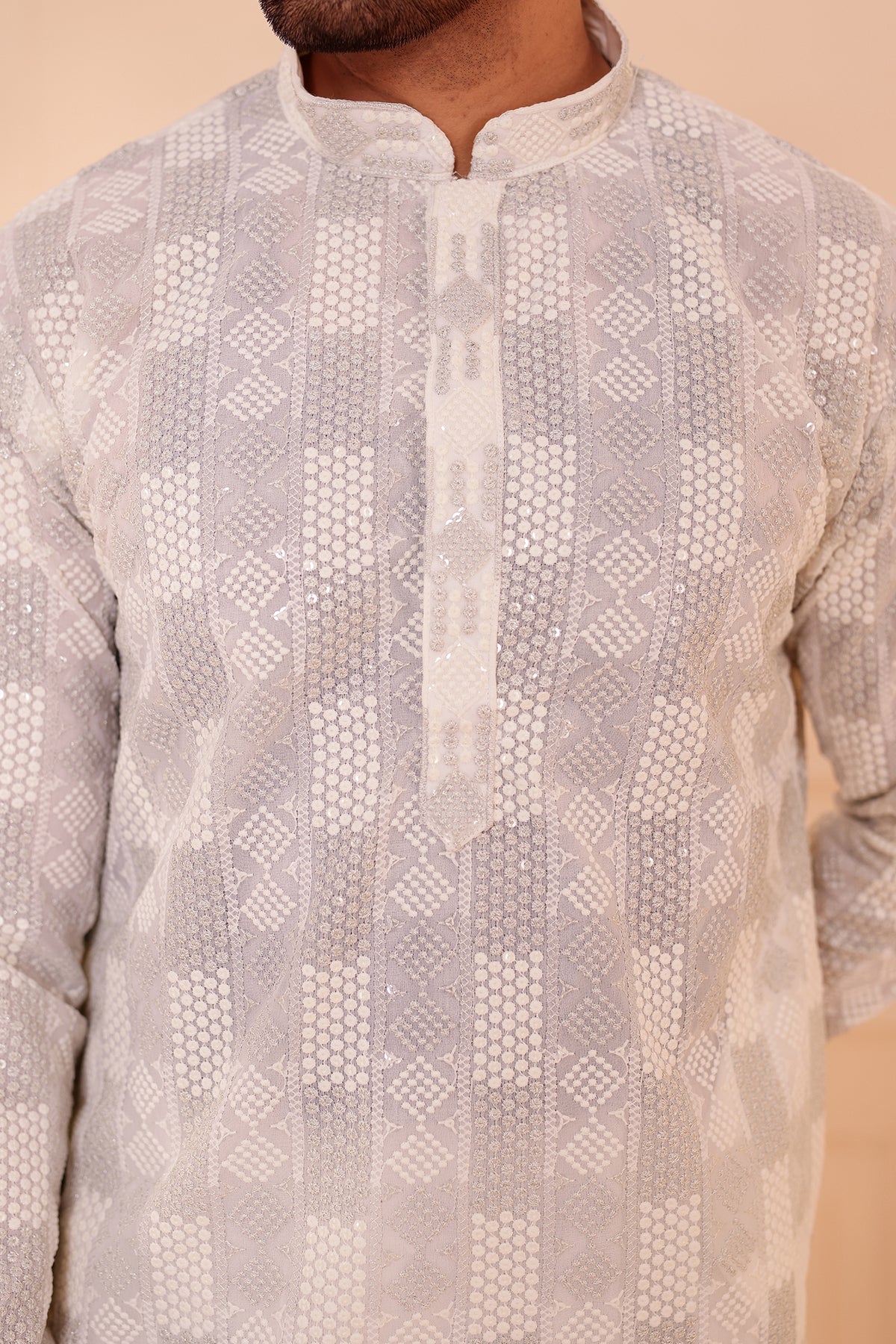Elegance takes center stage with this white georgette kurta suit, crafted with intricate heavy chikankari detailing. Designed for the modern man who appreciates traditional craftsmanship, this set offers both comfort and sophistication. Perfect for festive gatherings, weddings, or special occasions. Includes a kurta and pajama for a complete ethnic look.